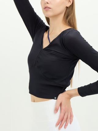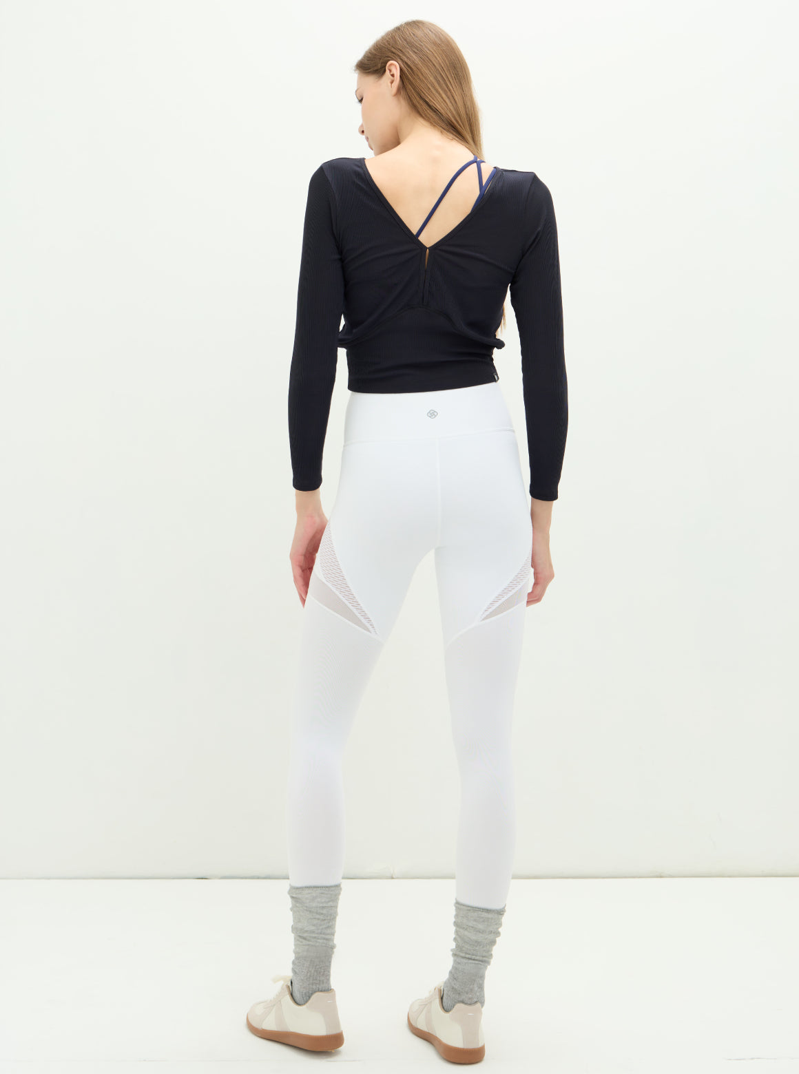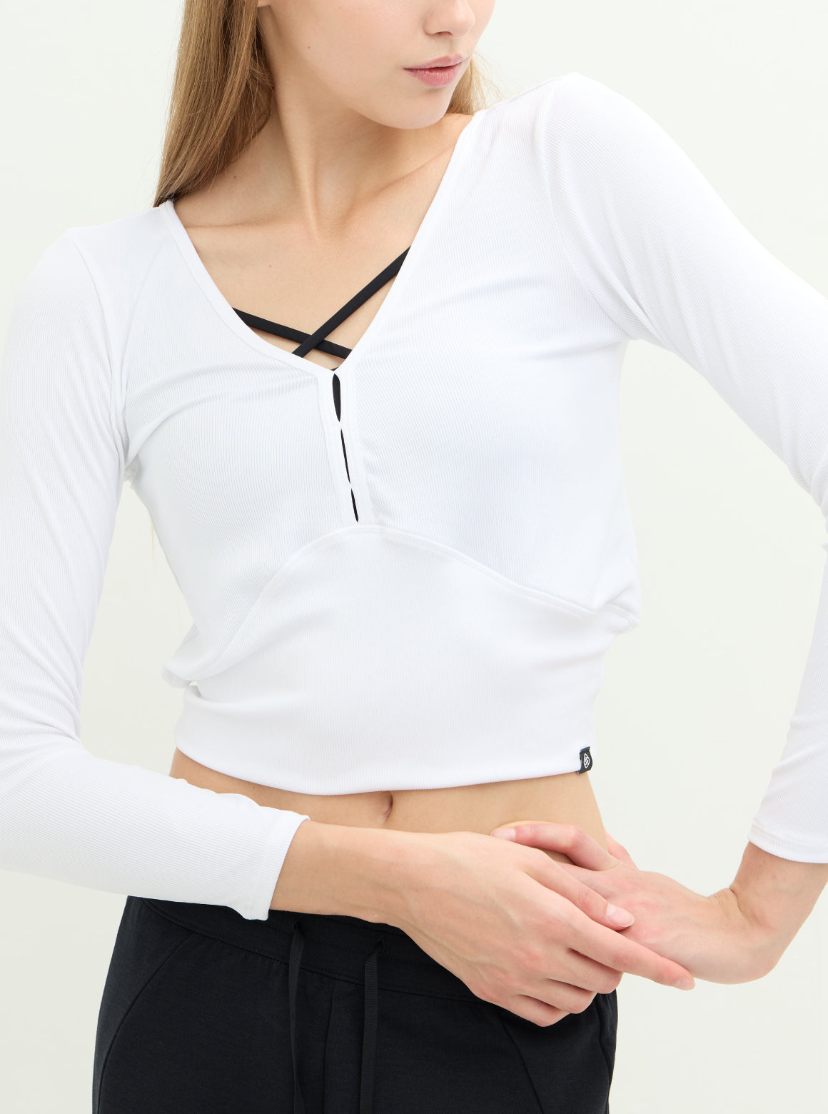 S2N設計系列SLOW LIFE兩穿柔彈羅紋上衣,優雅V領線條 × 柔彈細緻羅紋 × 前後正反造型兩穿採用細緻柔彈羅紋布料製成,親膚貼合且具延展性,提供全天舒適的包覆感。前後皆可穿的設計是這款的亮點:V 領結構搭配細緻鏤空,能自然修飾鎖骨與肩頸線條;反面穿則呈現簡潔圓領樣式,讓一件上衣擁有兩種風格造型。微短版比例剛好落在腰線位置,搭配高腰褲更能拉長身形。從輕運動、瑜珈到日常穿搭皆適用,是兼具機能與時尚的必備百搭款
