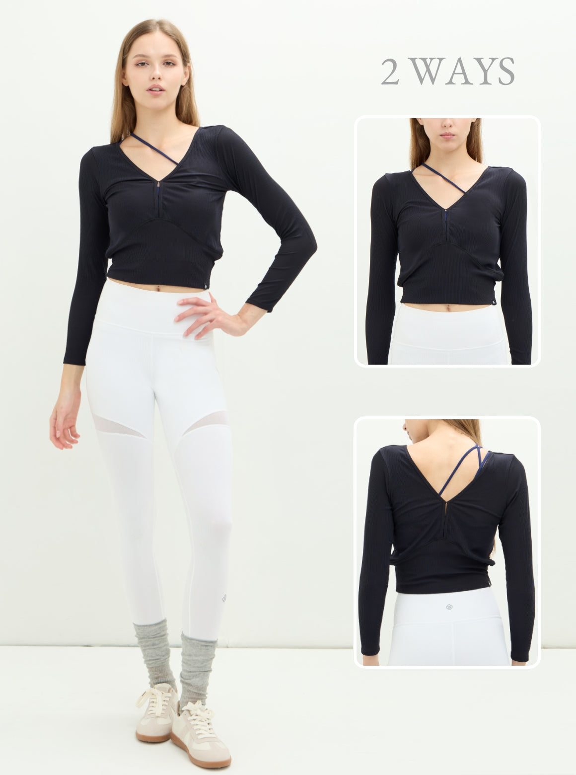 • 前後兩穿設計:V 領交叉 × 簡潔圓領,兩風格自由切換