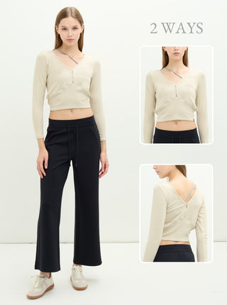 • 前後兩穿設計:V 領交叉 × 簡潔圓領,兩風格自由切換