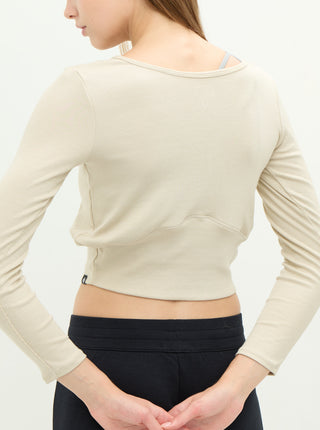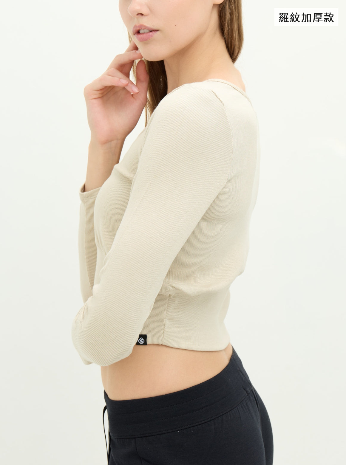 S2N設計系列SLOW LIFE兩穿柔彈羅紋上衣,優雅V領線條 × 柔彈細緻羅紋 × 前後正反造型兩穿採用細緻柔彈羅紋布料製成,親膚貼合且具延展性,提供全天舒適的包覆感。前後皆可穿的設計是這款的亮點:V 領結構搭配細緻鏤空,能自然修飾鎖骨與肩頸線條;反面穿則呈現簡潔圓領樣式,讓一件上衣擁有兩種風格造型。微短版比例剛好落在腰線位置,搭配高腰褲更能拉長身形。從輕運動、瑜珈到日常穿搭皆適用,是兼具機能與時尚的必備百搭款