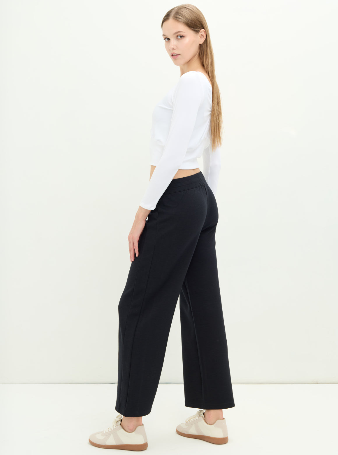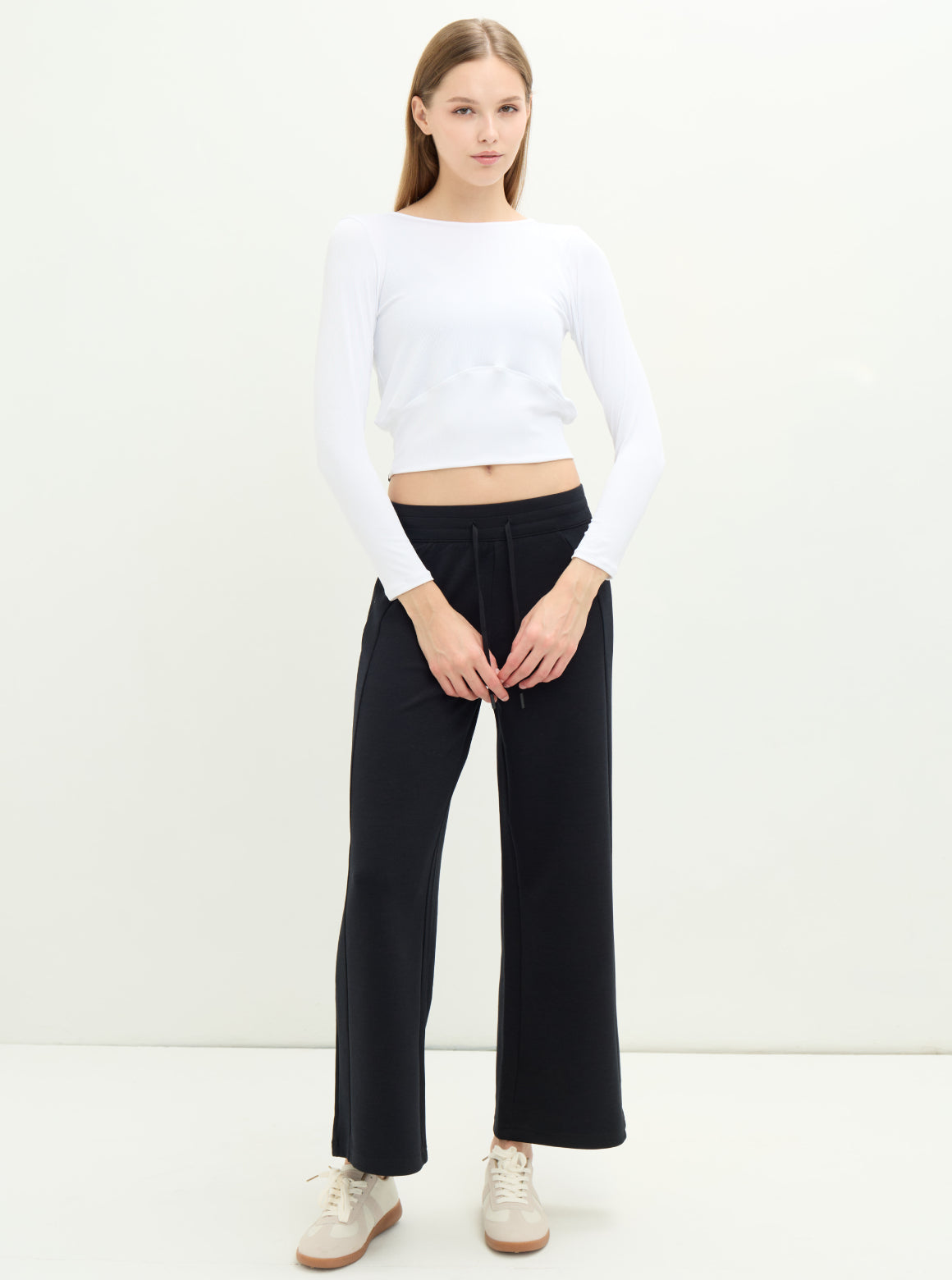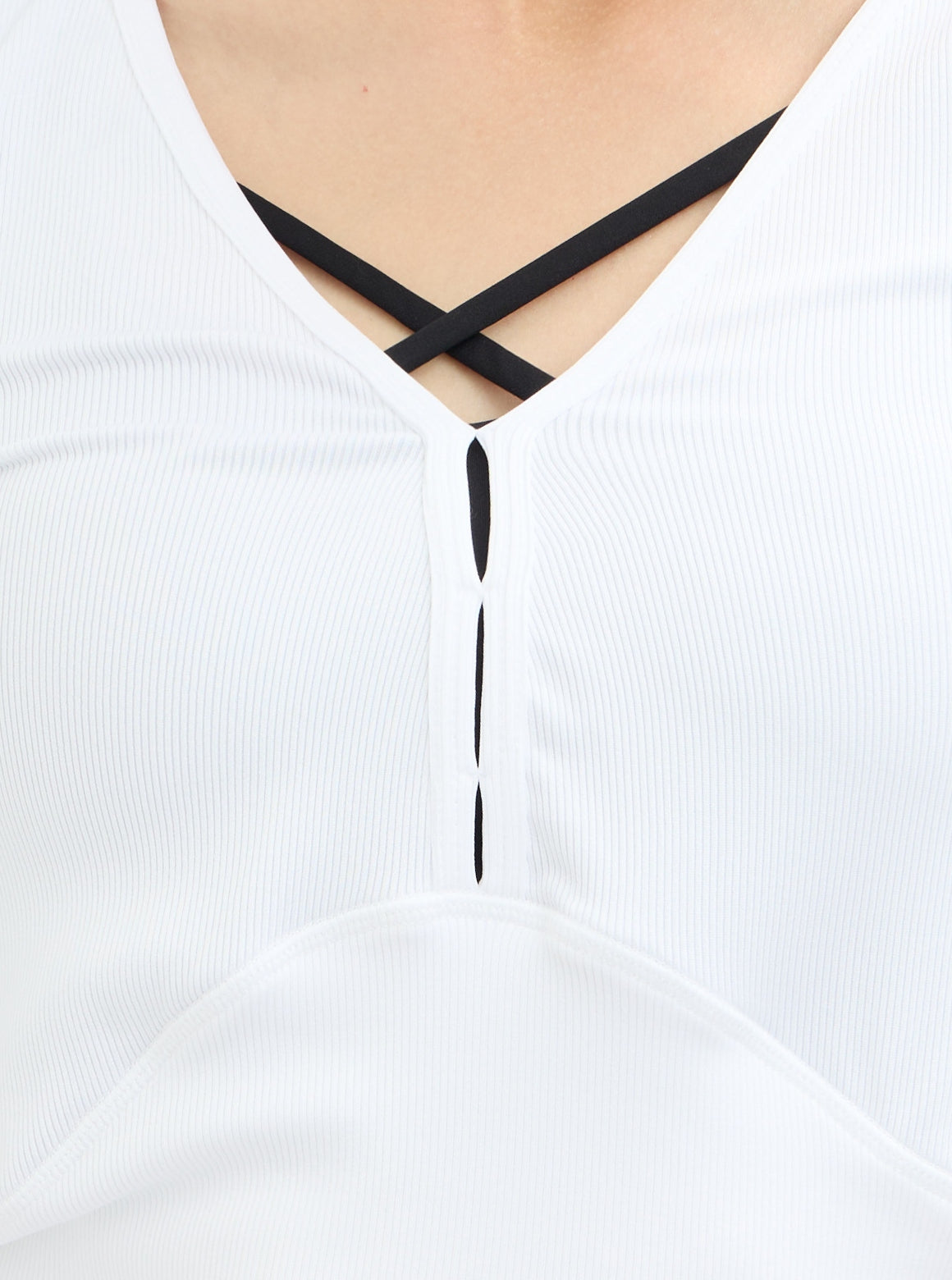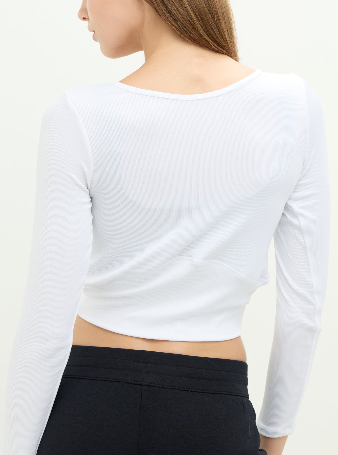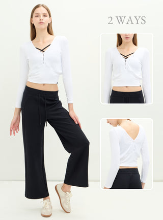 S2N設計系列SLOW LIFE兩穿柔彈羅紋上衣,優雅V領線條 × 柔彈細緻羅紋 × 前後正反造型兩穿採用細緻柔彈羅紋布料製成,親膚貼合且具延展性,提供全天舒適的包覆感。前後皆可穿的設計是這款的亮點:V 領結構搭配細緻鏤空,能自然修飾鎖骨與肩頸線條;反面穿則呈現簡潔圓領樣式,讓一件上衣擁有兩種風格造型。微短版比例剛好落在腰線位置,搭配高腰褲更能拉長身形。從輕運動、瑜珈到日常穿搭皆適用,是兼具機能與時尚的必備百搭款